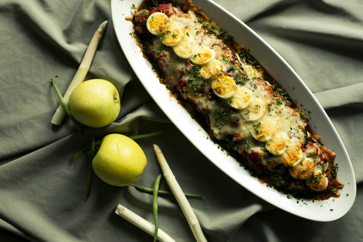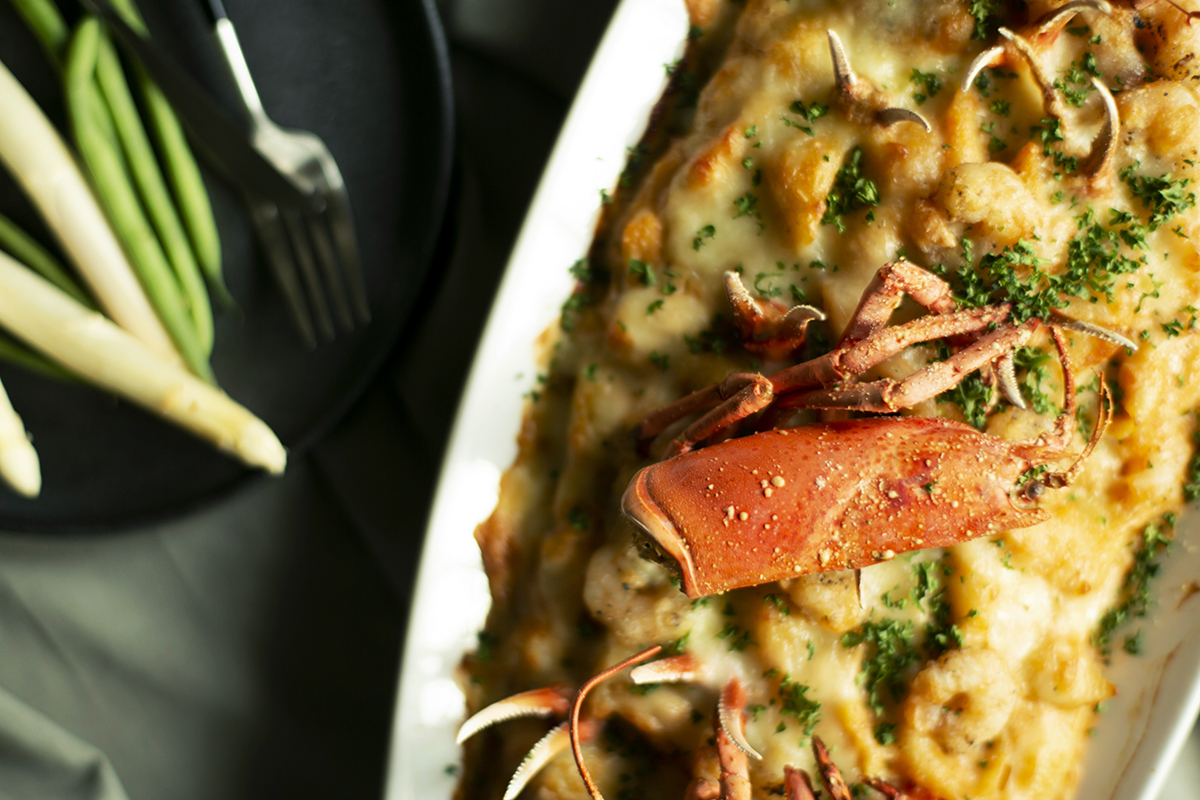 温かいお料理には、ずわい蟹を丸ごと使用したグラタンや岩手県産特選銘柄を使用した