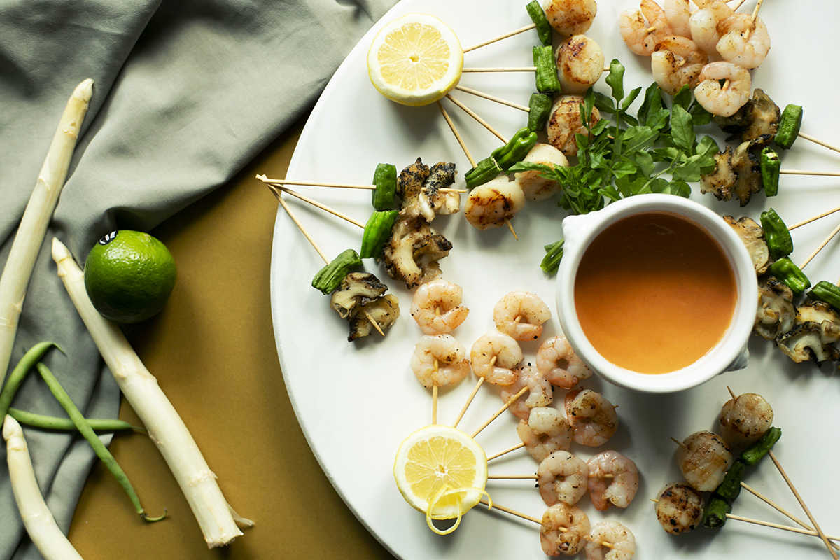 温かいお料理には、シーフードのプロシェットグリルやアンガス牛ロースのグリルステーキなど