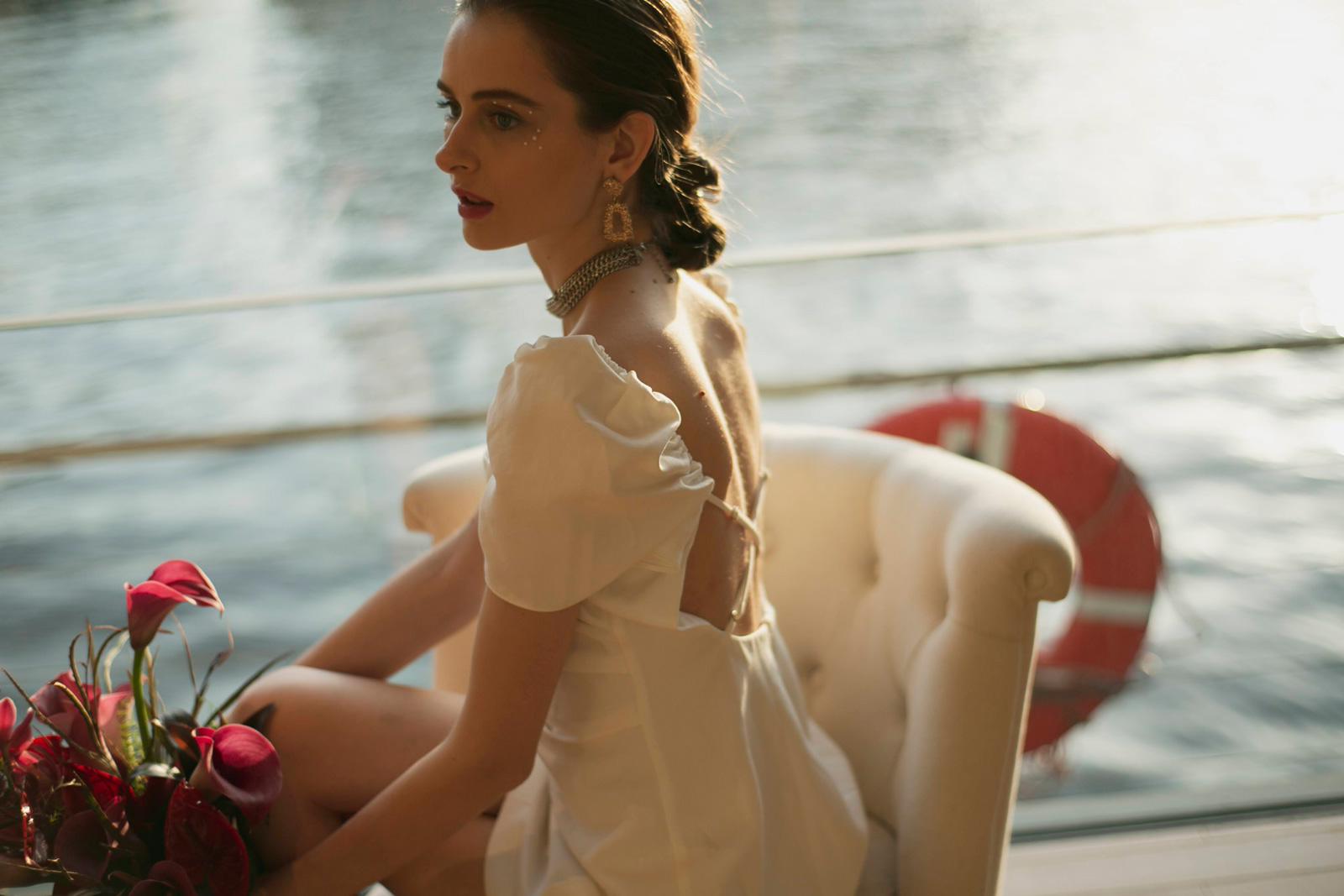 一隻の客船が運河に佇んでいます